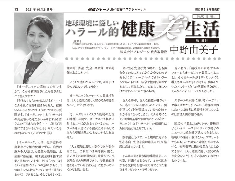 【健康/美容エステジャーナル】10/21号「地球環境に優しいハラール的健康美生活」第16回連載