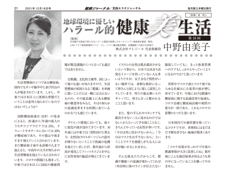 【健康/美容エステジャーナル】12/16号「地球環境に優しいハラール的健康美生活」第18回連載