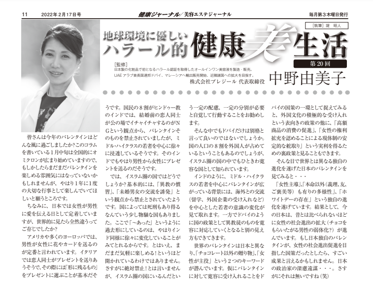 【健康/美容エステジャーナル】2/17号「地球環境に優しいハラール的健康美生活」第20回連載