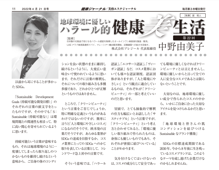 【健康/美容エステジャーナル】4/21号「地球環境に優しいハラール的健康美生活」第22回連載