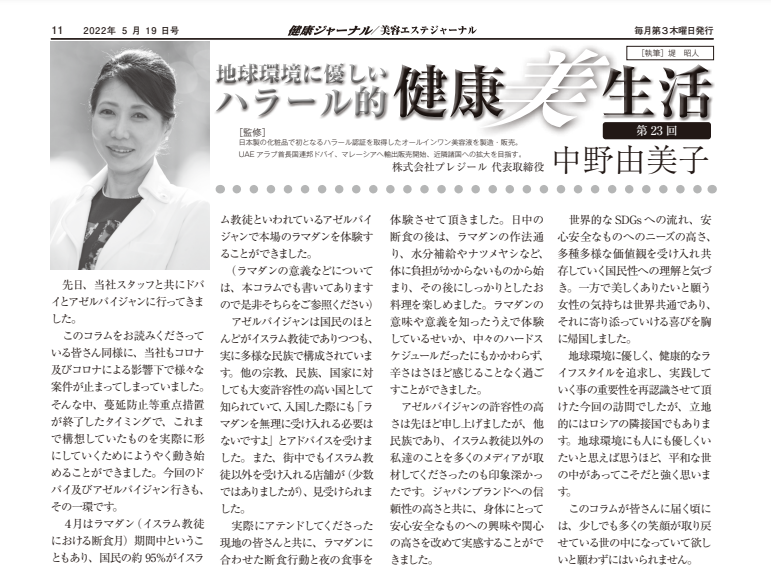 【健康/美容エステジャーナル】5/19号「地球環境に優しいハラール的健康美生活」第23回連載