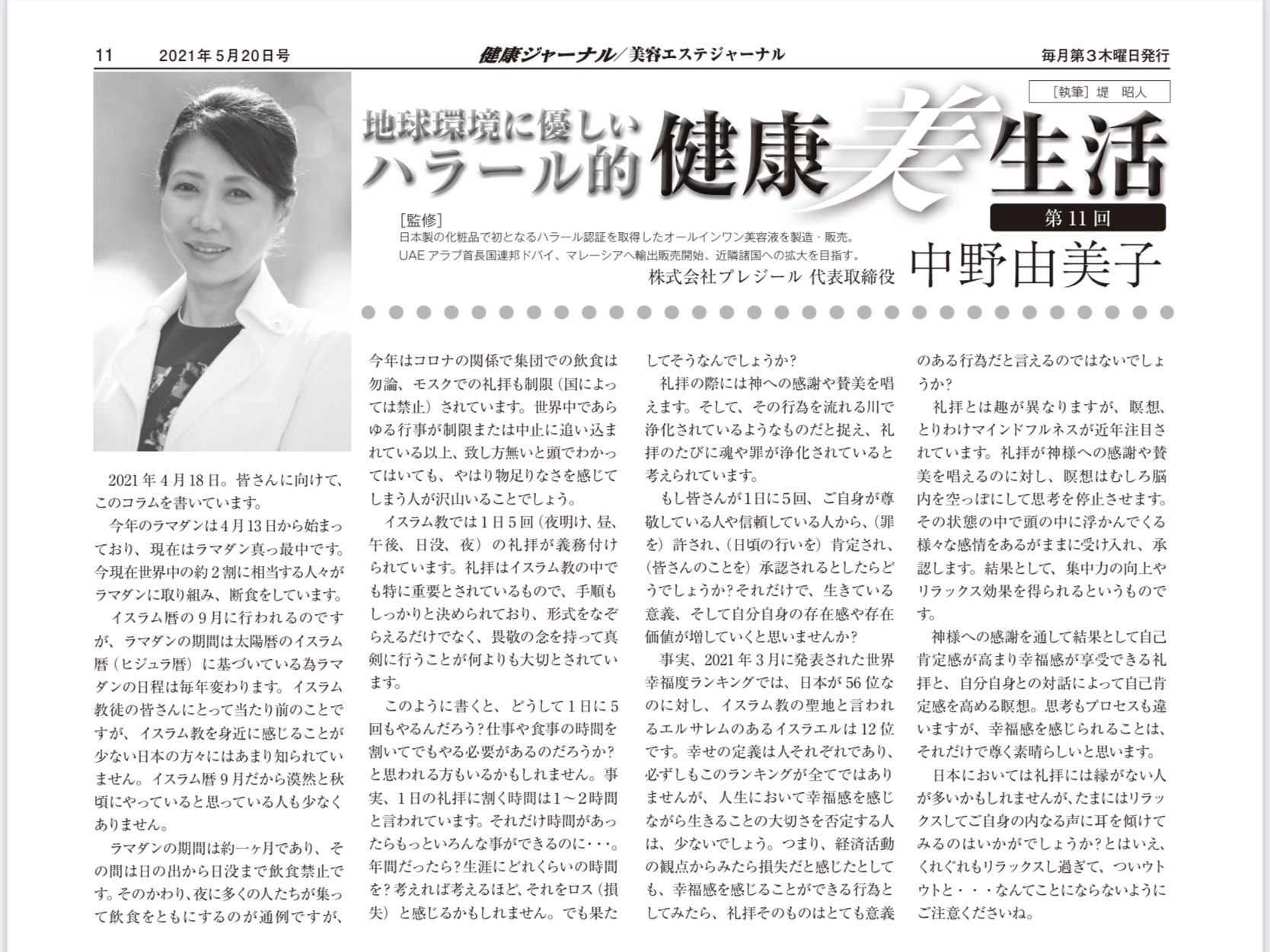 【健康/美容エステジャーナル】5/20号「地球環境に優しいハラール的健康美生活」第11回連載