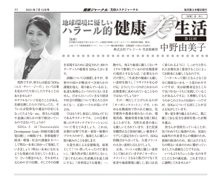 【健康/美容エステジャーナル】7/15号「地球環境に優しいハラール的健康美生活」第13回連載