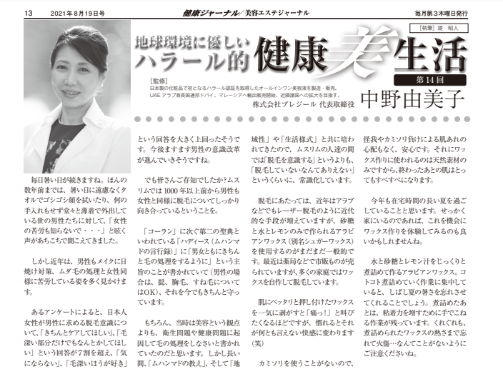 【健康/美容エステジャーナル】8/19号「地球環境に優しいハラール的健康美生活」第14回連載